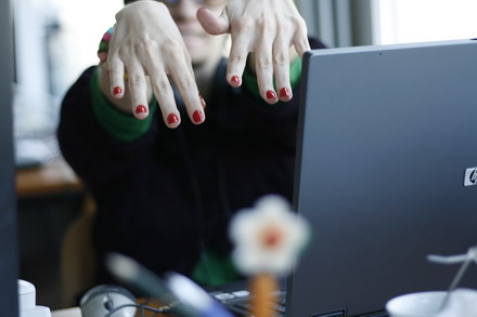 3 Responses to my red nails @work