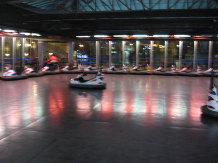In the evening, dupa o bere la o terasa si cina, hai la Prater. Ploua mocaneste. Moi, je voulais sa ma dau in roata cea mare. Insa pana sa terminam berile s-a inchis. Asa ca ne-au ramas masinutele:) si a fost mega fun.